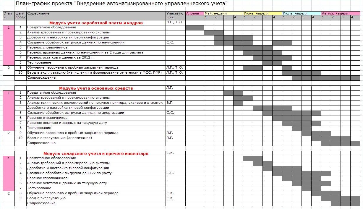 · составление план-графика внедрения для оценки сроков и стоимости внедрения